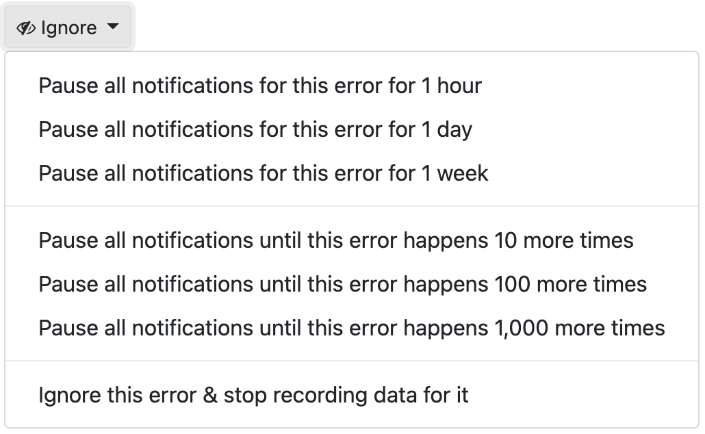 You can choose to "Pause" for a time duration or occurrence count. We will still record the occurrences, we just won't notify you.