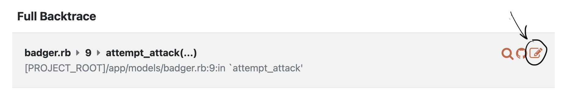 One of the advanced features in Honeybadger is configuring your local editor settings so that we can display links to open files locally when showing you an error backtrace: